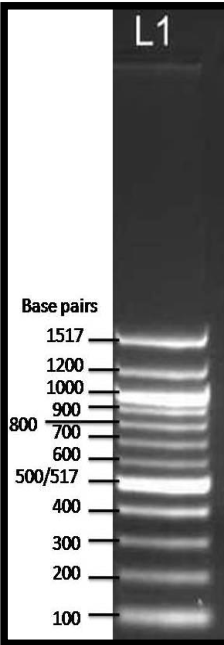 - Size of the DNA: This one is obvious, the bigger the DNA, the slower it will move while the smaller ones tend to move faster as can be seen in the following figure where the 100 bp DNA band runs faster than the 1500 bp band.