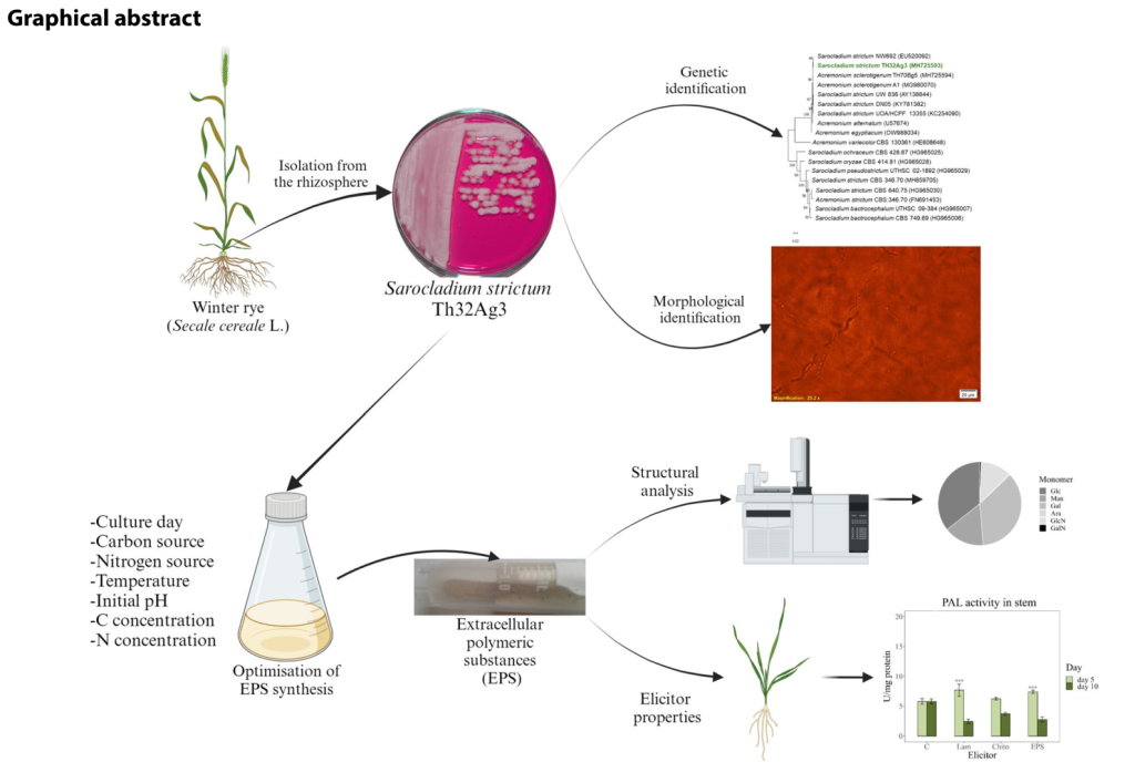 A recent paper published in Archives of Microbiology (2025) reports that extracellular polymeric substances (EPS) produced by the fungus Sarocladium strictum can act as powerful natural elicitors to improve plant resistance and growth.