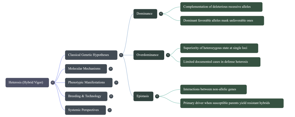 Understanding the genetic drivers of heterosis is essential for predicting specific combining ability and directing commercial selection. These hypotheses are not mutually exclusive; rather, they provide a multi-layered framework for interpreting how allelic interactions drive hybrid superiority.