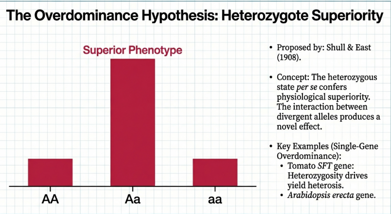 But what if the hybrid’s strength isn’t just about hiding mistakes? The Overdominance Hypothesis suggests a “Heterozygote Advantage,” where the mixture itself possesses a unique power.