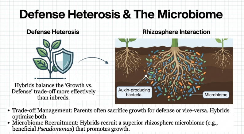 Because the rhizosphere microbiota significantly influences the level of heterosis—and could even reverse it into a “hybrid disadvantage” if the community structure is poor—researchers are looking toward microbiome manipulation as an ecological solution. Screening for specific combinations of microbiota that enhance defense and growth offers a new way to predict and deploy heterosis at the agroecosystem level.